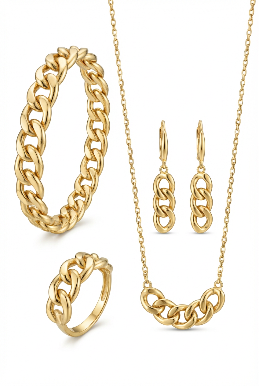 Masterfully designed by Rifgold, this comprehensive 18K gold set celebrates the pure luster of precious metal without the distraction of gemstones, featuring a ring, bracelet, earrings, and pendant adorned with intricate openwork arabesques. The delicate filigree design pays homage to the sophisticated artistry of Rif culture and North African heritage, creating a “common symbol” of elegance that transcends borders. Embodying the timeless Moroccan philosophy of “Zeina wa Khazina” (beauty and savings), this solid gold collection serves as both a stunning adornment and a tangible investment, making it an ideal, prestigious gift for marriages and special occasions where authentic Amazigh identity is cherished.